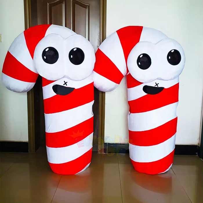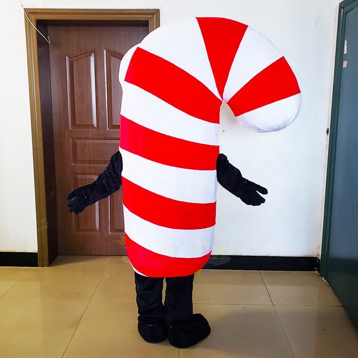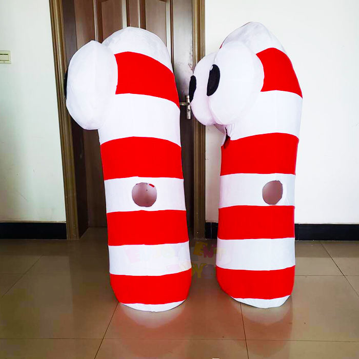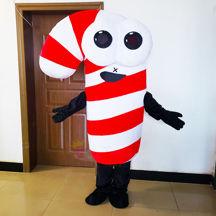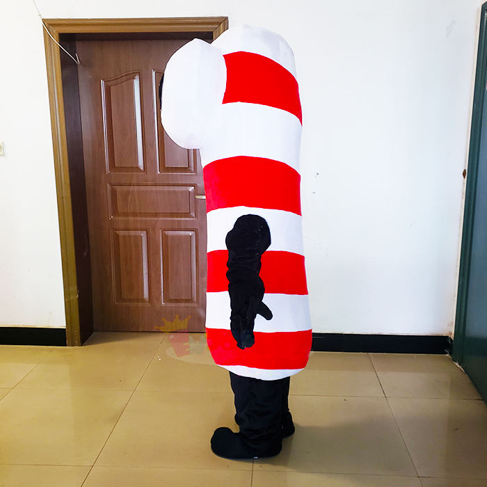ชุดมาสคอตลายแท่งลูกกวาดสีแดงขาว ตาโต แบบการ์ตูน ชุดเดินเล่นสำหรับงานคริสต์มาส งานคาร์นิวัล งานปาร์ตี้ โปรโมชั่นแบรนด์