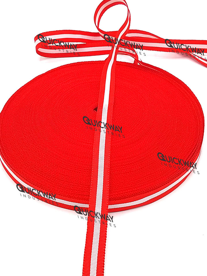 ริบบิ้นผ้ากรอสเกรนลายทางสีแดงขาว และริบบิ้นสำหรับงานพิธี ใช้สำหรับตกแต่งบ้าน ของขวัญ และรางวัล