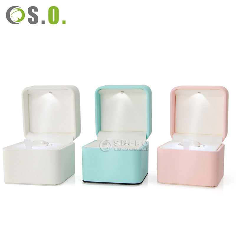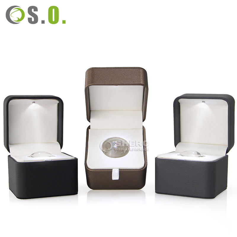 กล่องหนัง PU สีแดงสำหรับใส่แหวน จี้ สร้อยข้อมือ กำไล สร้อยคอ กล่องเครื่องประดับพร้อมไฟ LED รับทำโลโก้ขายส่ง