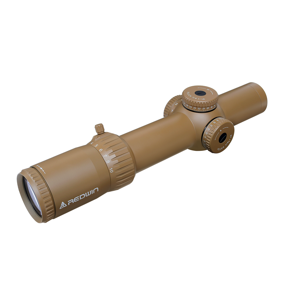 กล้องนกอินทรีสีขาวแดงแบบ1-10x28FFP 34มม. หลอดขนาด1/4นิ้วปรับค่าได้