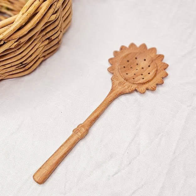 ช้อนไม้รูปดอกไม้สีแดงอุปกรณ์กรองชาทำจากไม้อุปกรณ์เครื่องครัวไม้ธรรมชาติแนววินเทจเป็นมิตรต่อสิ่งแวดล้อมของเวียดนามช้อนสำหรับชงชา