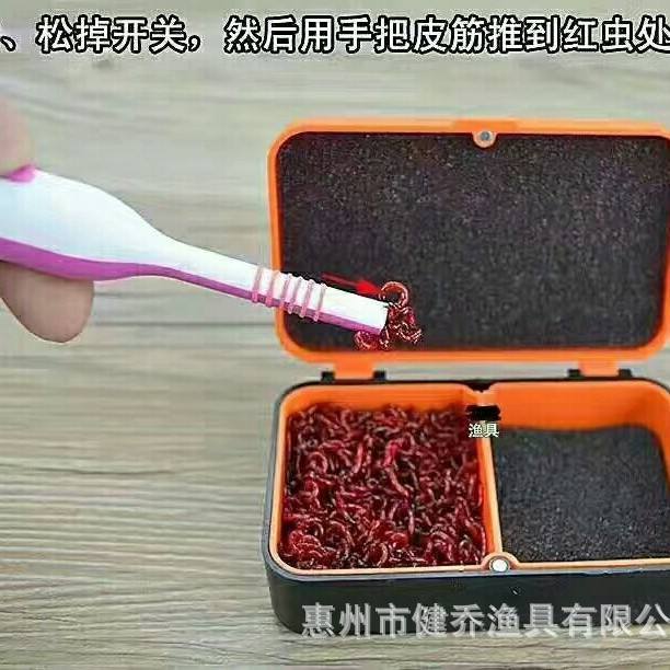 เครื่องมือตกปลาพลาสติกแบบปืนหนอนแดง สำหรับใส่เหยื่อและเกี่ยวเบ็ดในน้ำจืด พร้อมหนอนแดงในตัว