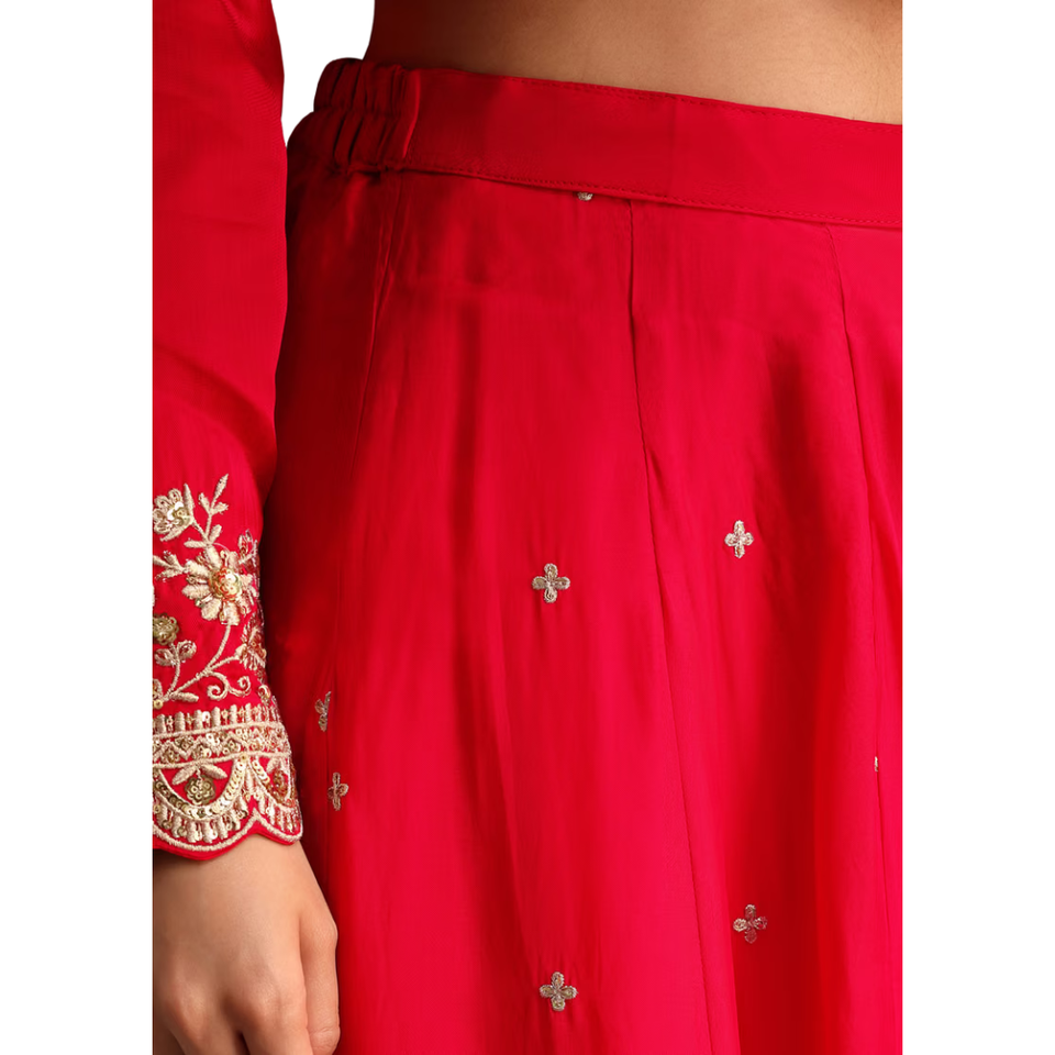 ชุดสูททำงาน zari Palazzo สีแดงกับ organza dupatta ชุดชนเผ่าเครื่องแต่งกายตามสั่งจากโรงงาน