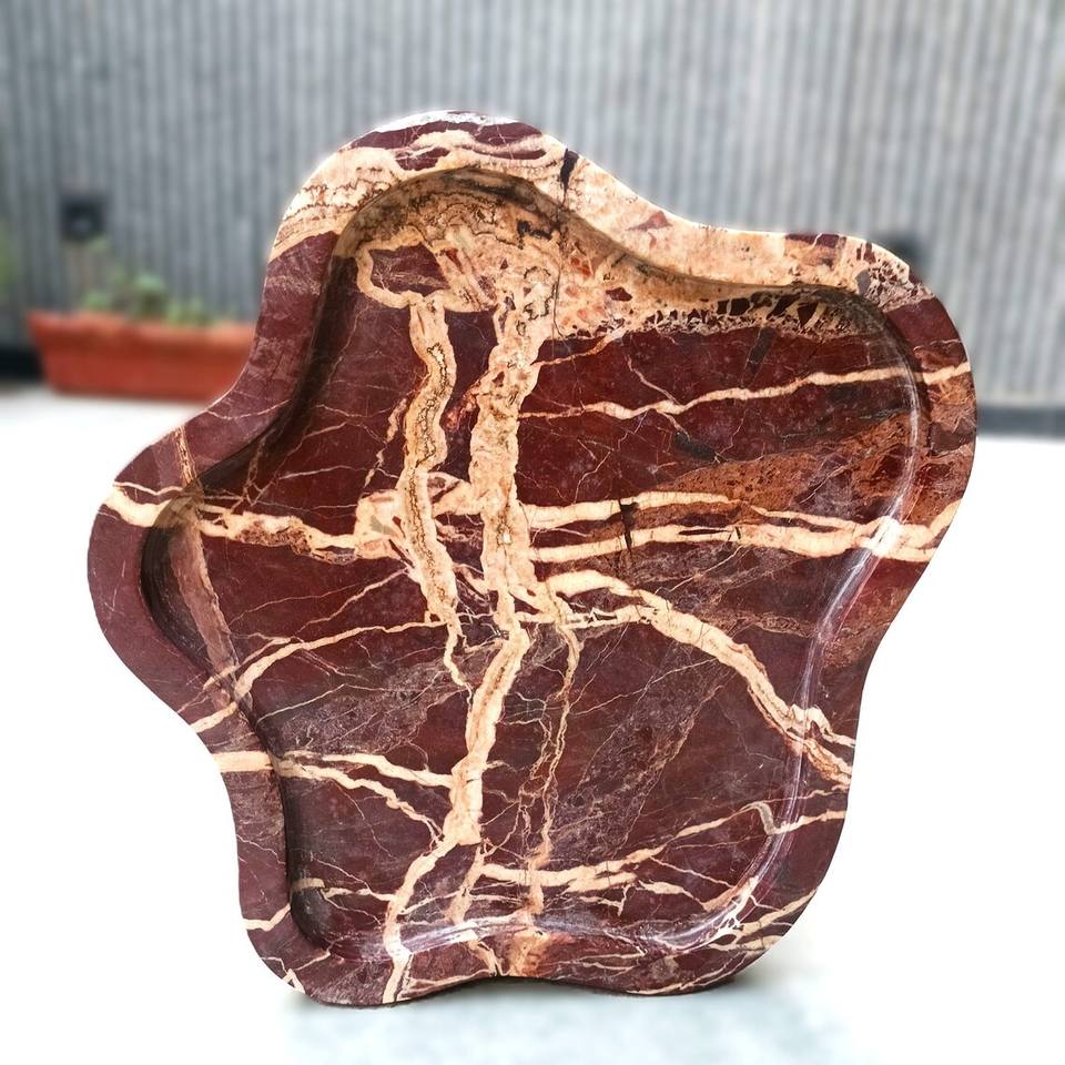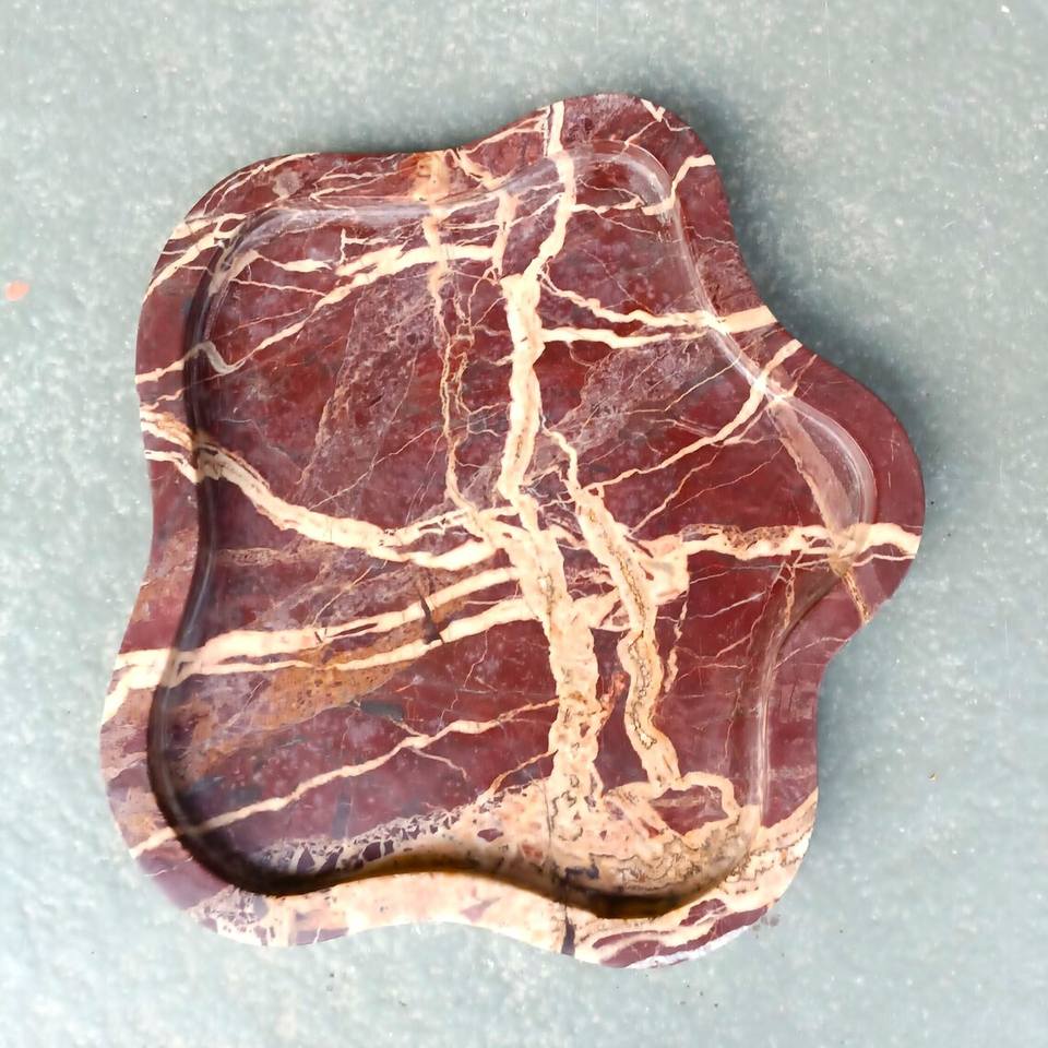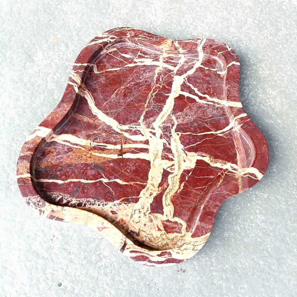ถาดหินอ่อนลายม้าลายสีแดงรูปทรงไม่สม่ำเสมอ ถาดเสิร์ฟหินธรรมชาติสำหรับตกแต่งบ้านสุดหรู