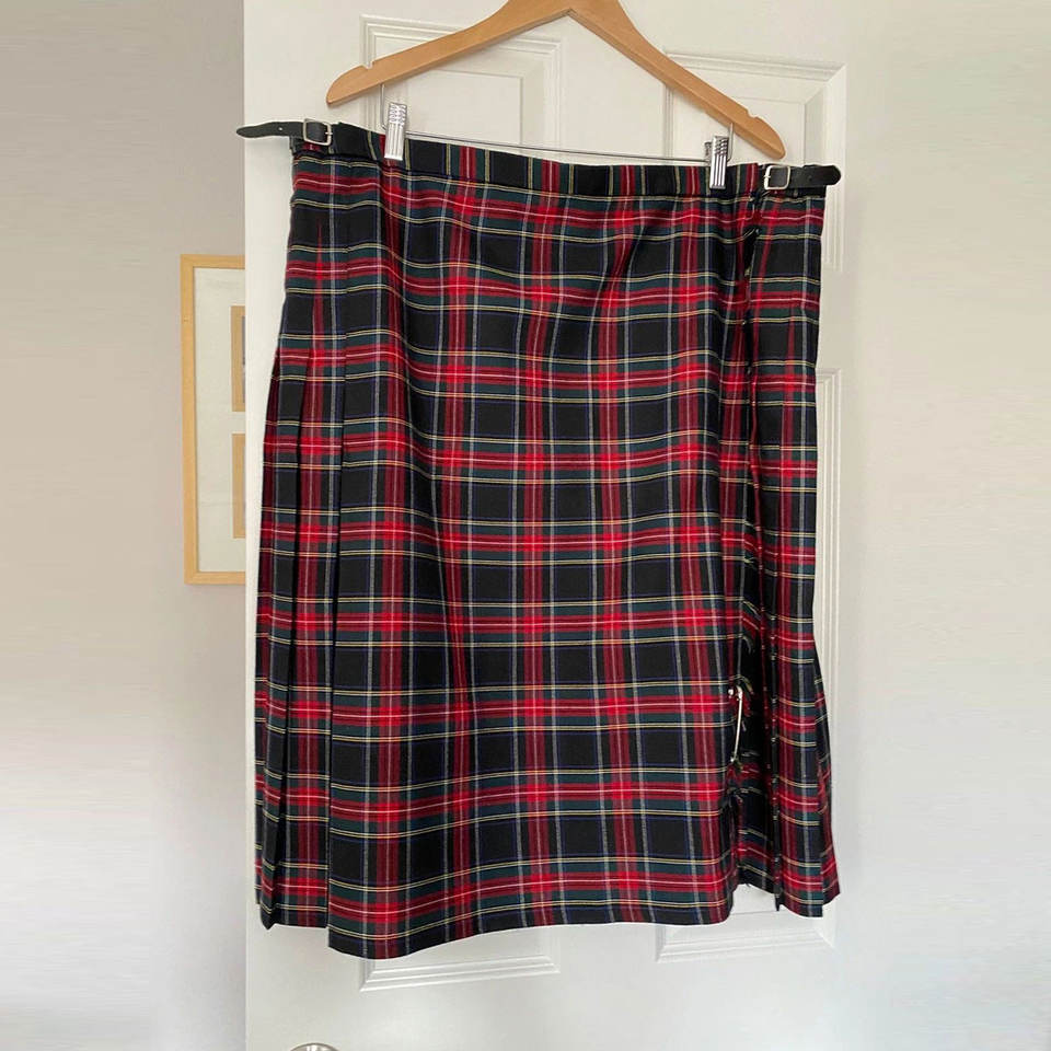 กระโปรงยาวลายตารางหมากรุกสีแดงและสีดำสำหรับผู้หญิง