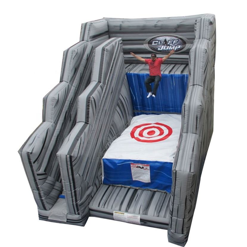 กระโดดแบบโลดโผนเป่าลมสีแดงและสีดำถุงนิรภัยกระโดดหน้าผาพองพร้อมเบาะกระโดดเกมฤดูใบไม้ร่วงที่ทำให้พองได้ฟรี