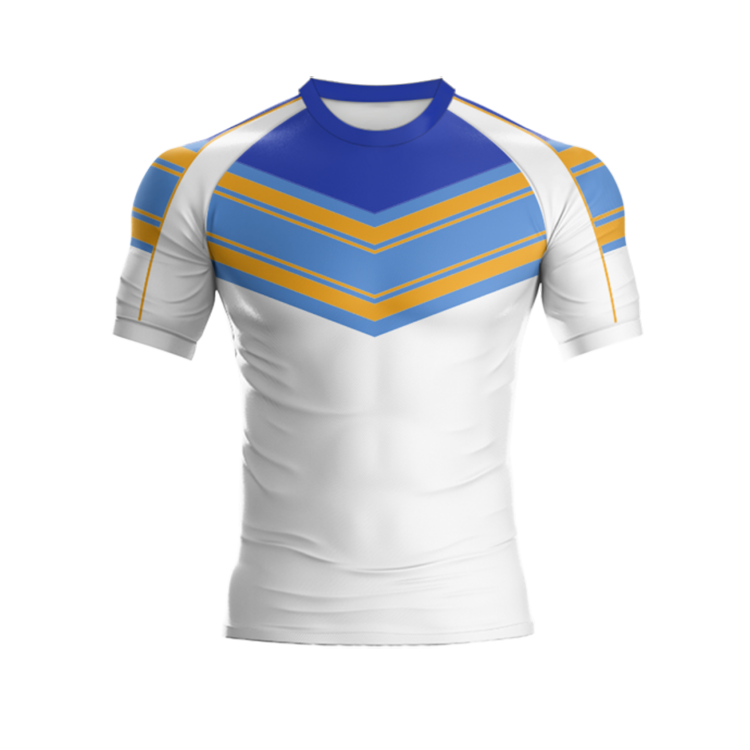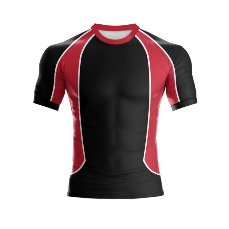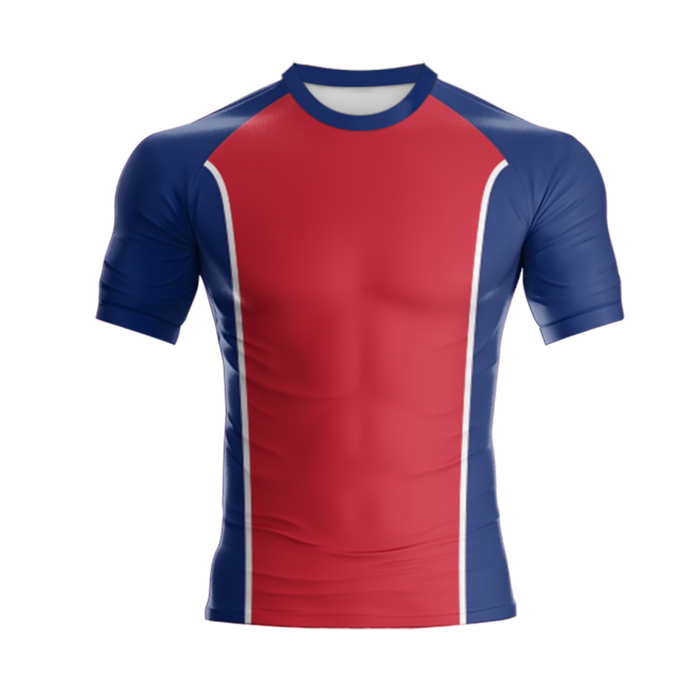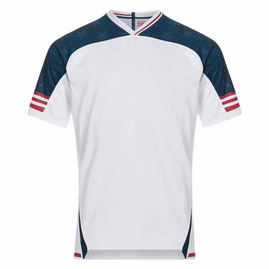 สีแดงและสีฟ้าที่กำหนดเองการออกแบบเสื้อรักบี้ระบายอากาศและสะดวกสบายเสื้อรักบี้/การออกแบบที่กำหนดเองโลโก้และขนาด
