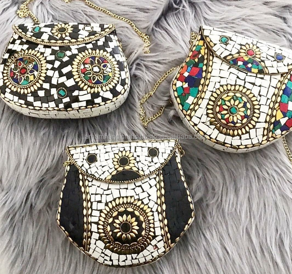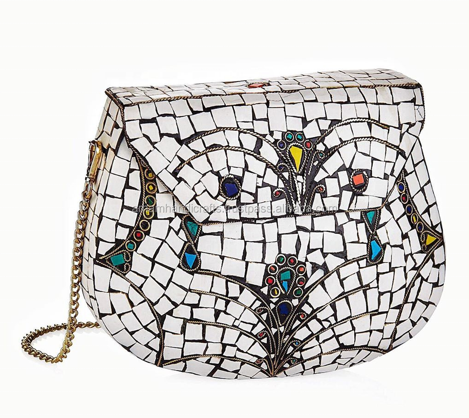 กระจกสีแดงและสีเงินทรงสี่เหลี่ยม กระเป๋าโมเสคโลหะ กระจกทํางาน กระเป๋าถือคลัทช์ กระเป๋าสะพายข้างสําหรับผู้หญิง โดย LUXURY CRAFTS
