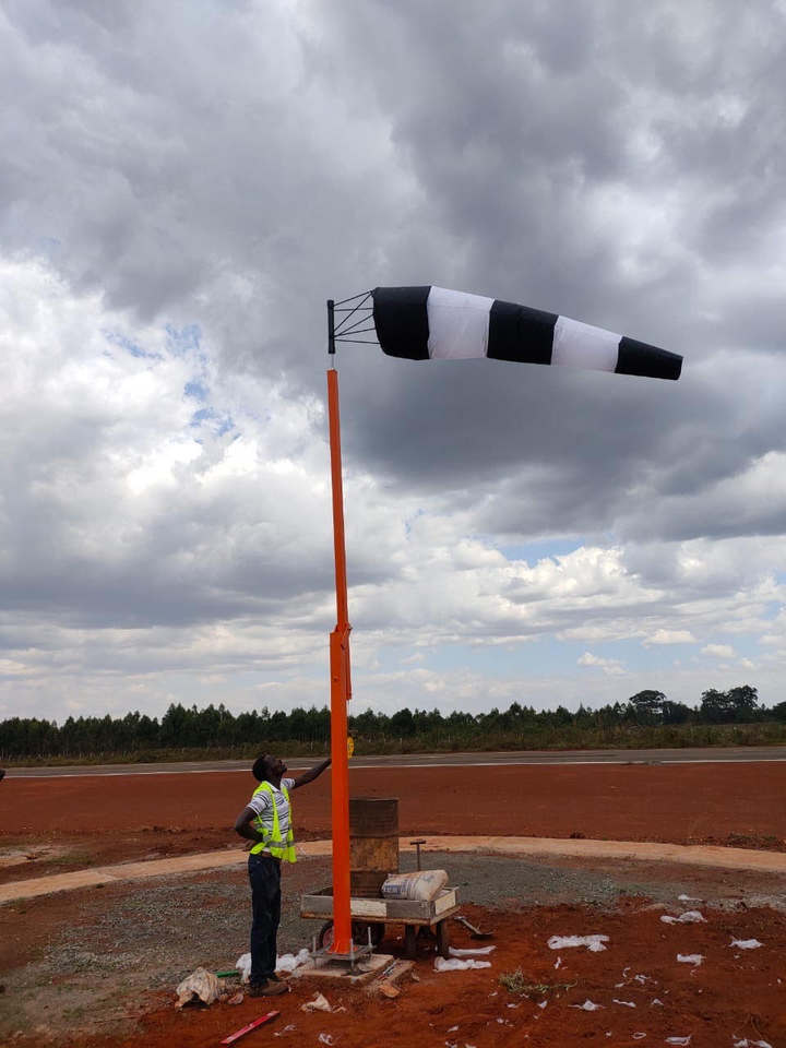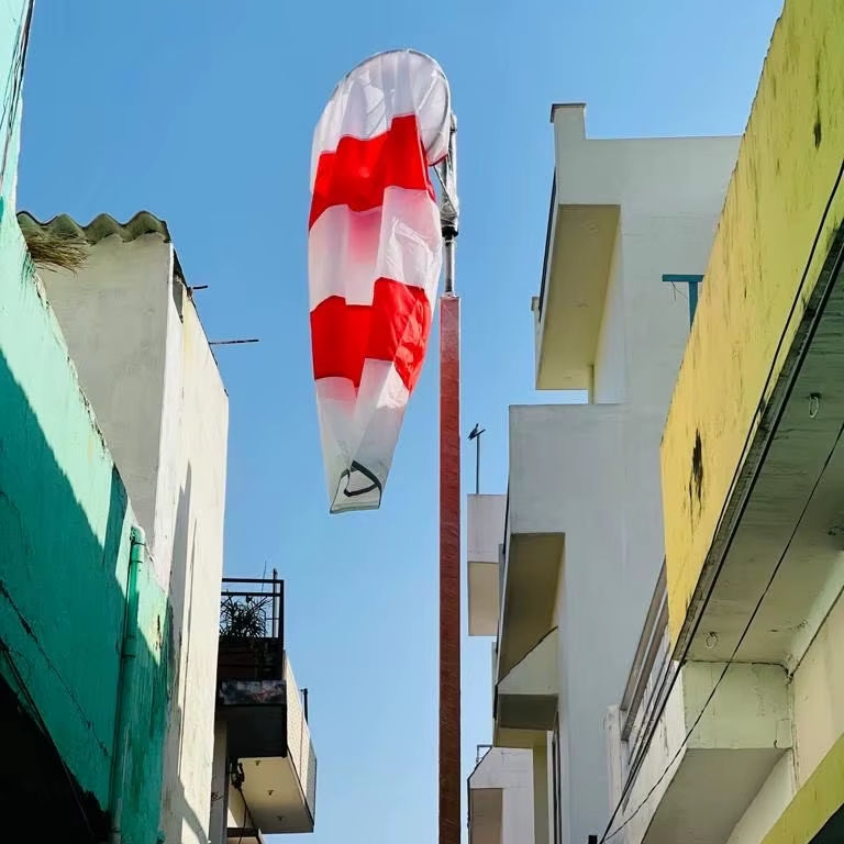 Windsocks โพลีเอสเตอร์สีแดงและสีขาวพร้อมขาตั้ง