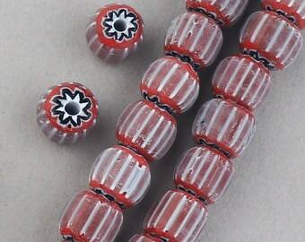 โคมไฟคริสตัลลายบั้งสีแดงและสีขาวและลูกปัดแก้วผสมสำหรับการออกแบบเครื่องประดับ