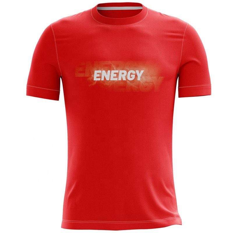 เสื้อยืดเจอร์ซีย์ผู้ชายสีแดงพิมพ์ลาย Red Blank Energy ระบายอากาศได้ดี แห้งเร็ว ไซส์ใหญ่ สวมใส่สบาย รับสกรีนโลโก้ สำหรับวิ่ง