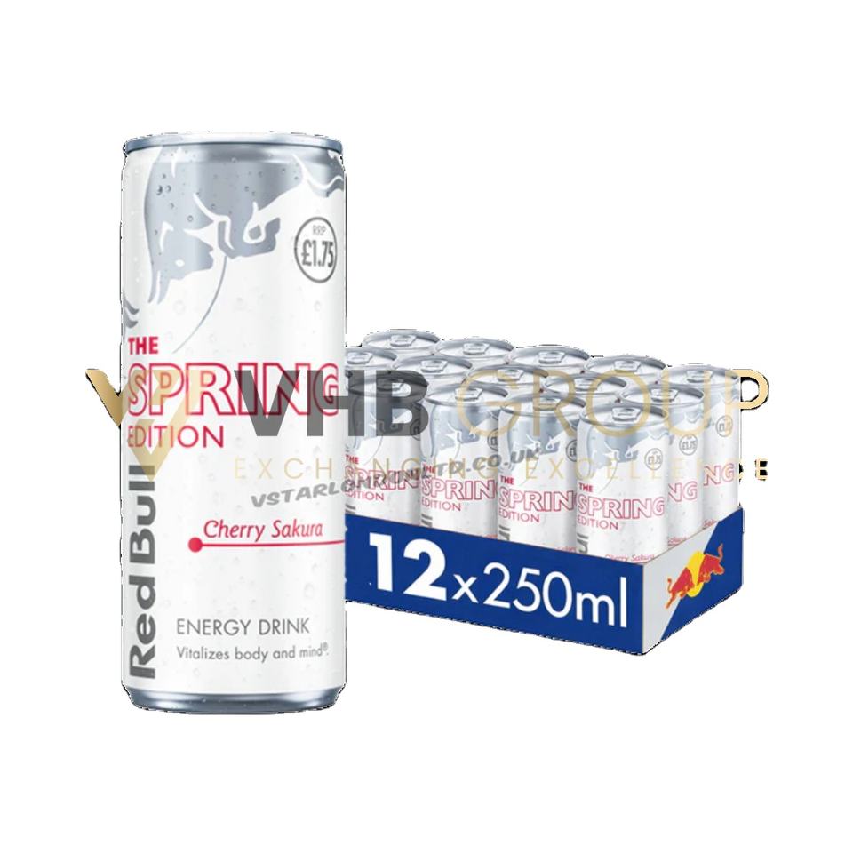 เครื่องดื่มชูกำลังเรดบูล เชอร์รี่ซากุระ ผลิตในสหราชอาณาจักร ขนาด 250 มล. 12 กระป๋อง อายุการเก็บรักษา 12 เดือน ขายส่ง