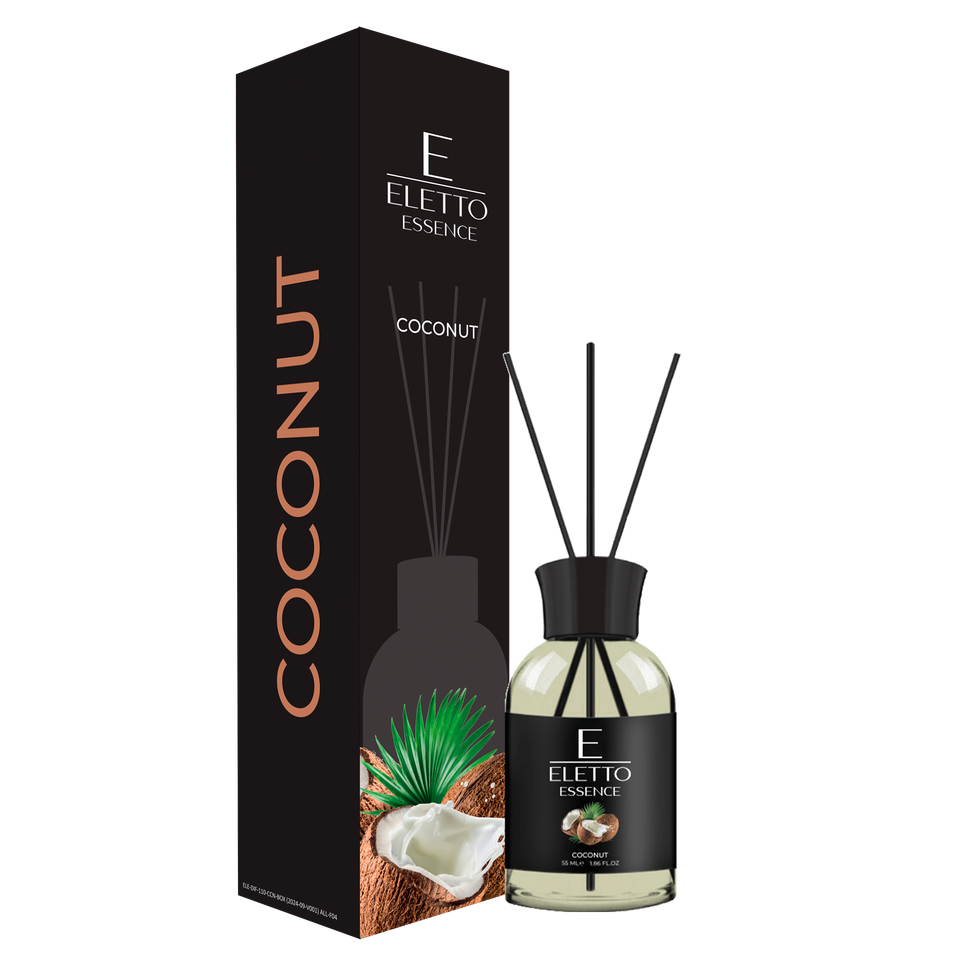 ขวดน้ำหอมกลิ่นต้นกกสำหรับบ้านและสำนักงานและโรงแรมกลิ่นมะพร้าว55มล./1.85ออนซ์ชุดก้านไม้หอมระเหยน้ำมันหอมระเหย