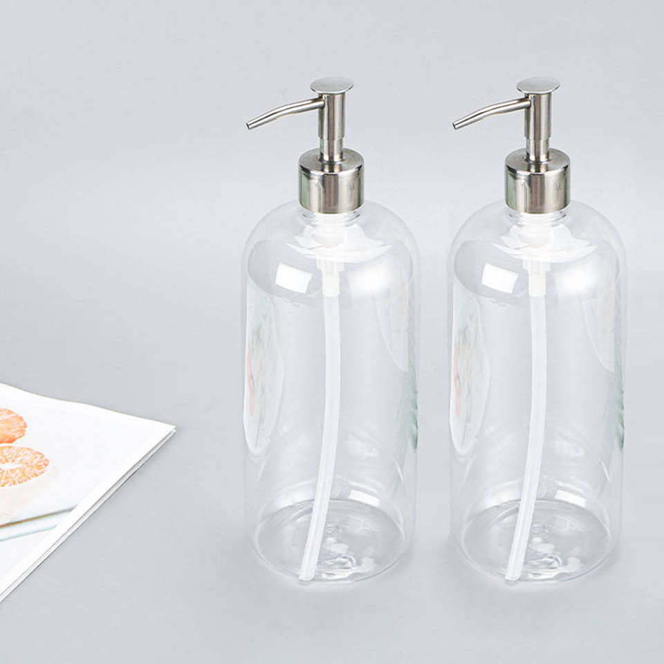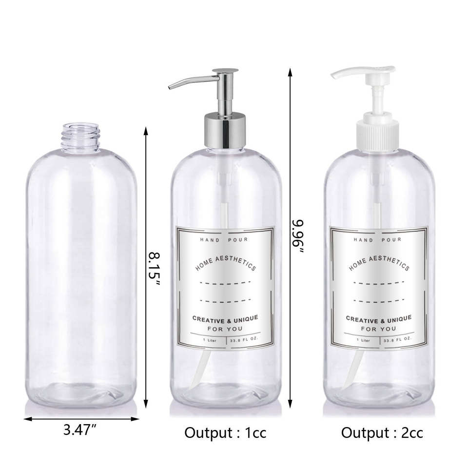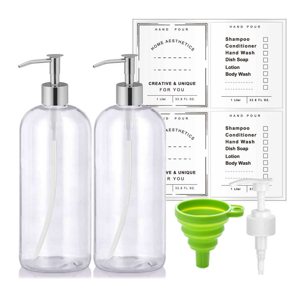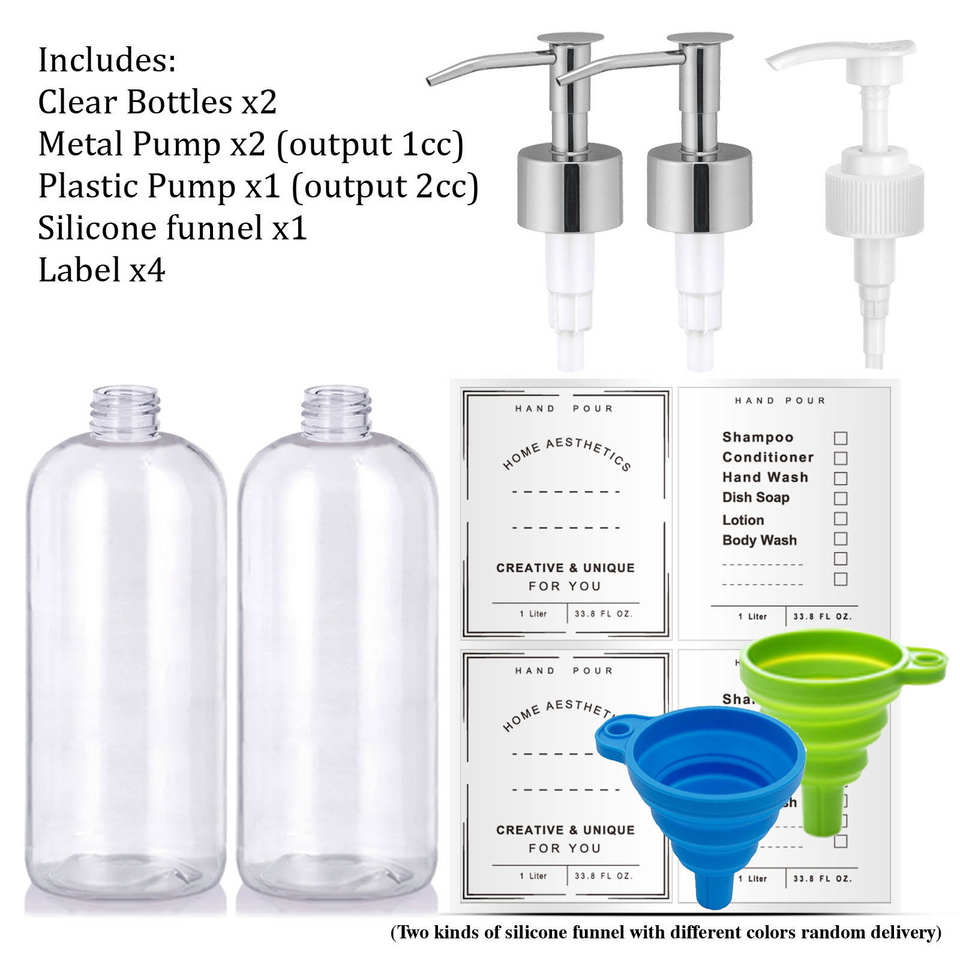 Refillable 32oz Dispenser Plastic Bottle 2pack with Steel Pumps for Shampoo, Conditioner, Body Wash, Liquid Hand Soap, Lotion