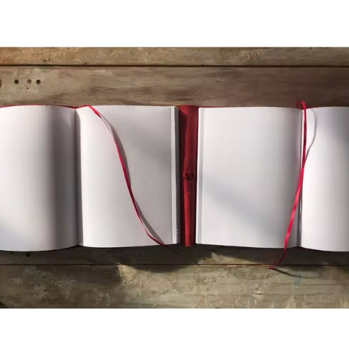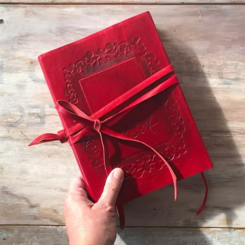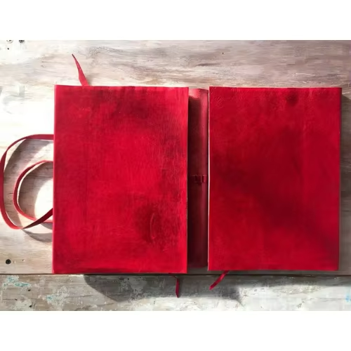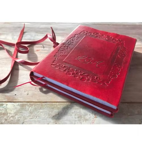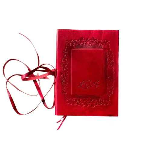 สมุดบันทึกแบบเติมได้สองเล่ม ปกหนังสีแดงโรแมนติก สมุดกริโมแวร์ลายเงาเย็บด้วยมือด้วยด้ายเย็บแบบพิเศษ