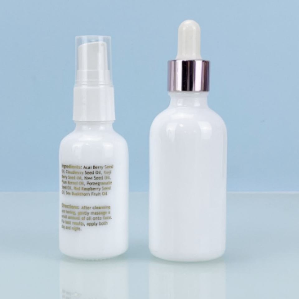 ขวดแก้วหยดสีขาวโอปอลสำหรับบรรจุผลิตภัณฑ์บำรุงผิวและน้ำมันหอมระเหย ขนาด 10 มล. 15 มล. 30 มล. 50 มล. 100 มล. พร้อมขวดโหล