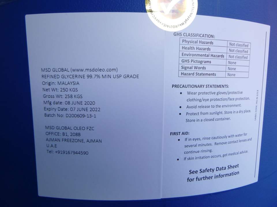 กลีเซอรีนบริสุทธิ์ 99.7% เกรด USP