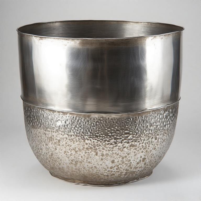 หม้อสีเงินออร่าสะท้อนแสงพร้อมค้อนแบบคลาสสิกสำหรับนักออกแบบที่เน้นโต๊ะหรือสีเขียวระเบียงในเมือง