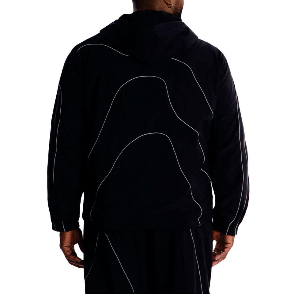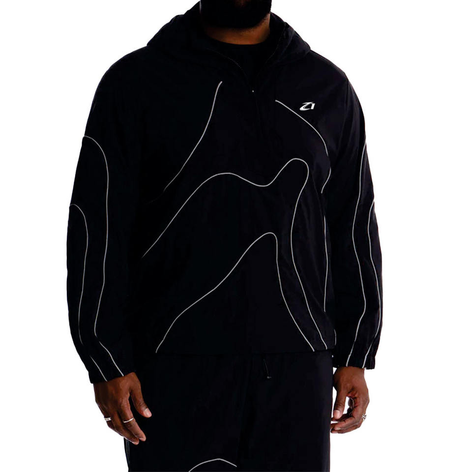 เสื้อแจ็คเก็ตกันลมแบบเปลี่ยนสีได้เมื่อโดนลม พร้อมแถบสะท้อนแสงและเส้นไฮไลท์แบบร้อนตัวได้ ชุดวอร์มแบบมองเห็นได้ชัดเจน