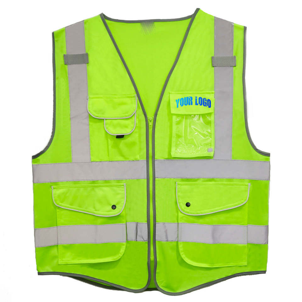 เสื้อกั๊กสะท้อนแสงแบบตาข่าย ระดับความปลอดภัย ANSI คลาส 2 กันน้ำ ไฟ LED กระพริบ ซิป โลโก้สั่งทำได้ เสื้อกั๊กสำหรับงานก่อสร้าง มีกระเป๋า