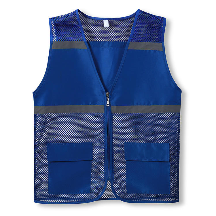 เสื้อกั๊กสะท้อนแสงเพื่อความปลอดภัย สีน้ำเงิน ตาข่าย ซิปด้านหน้า กระเป๋าสองข้าง ชุดลำลองสำหรับทุกเพศ ฤดูใบไม้ผลิ 2023 หูเป่ย หวู่ฮั่น