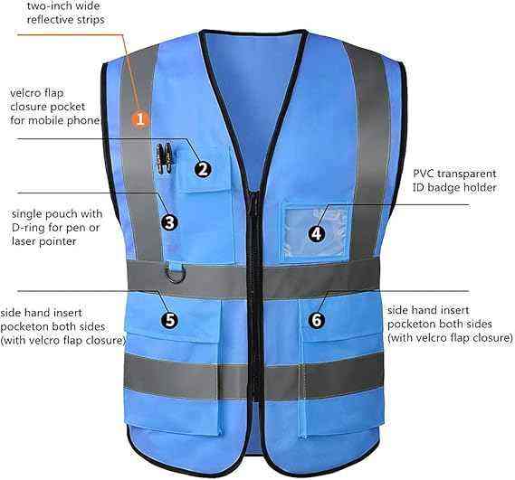 เสื้อกั๊กนิรภัยสะท้อนแสงมีหลายกระเป๋าทำจากโพลีเอสเตอร์เสื้อกั๊กนิรภัยแบบยุทธวิธีตามสั่งมีซิปปิดใช้งานได้