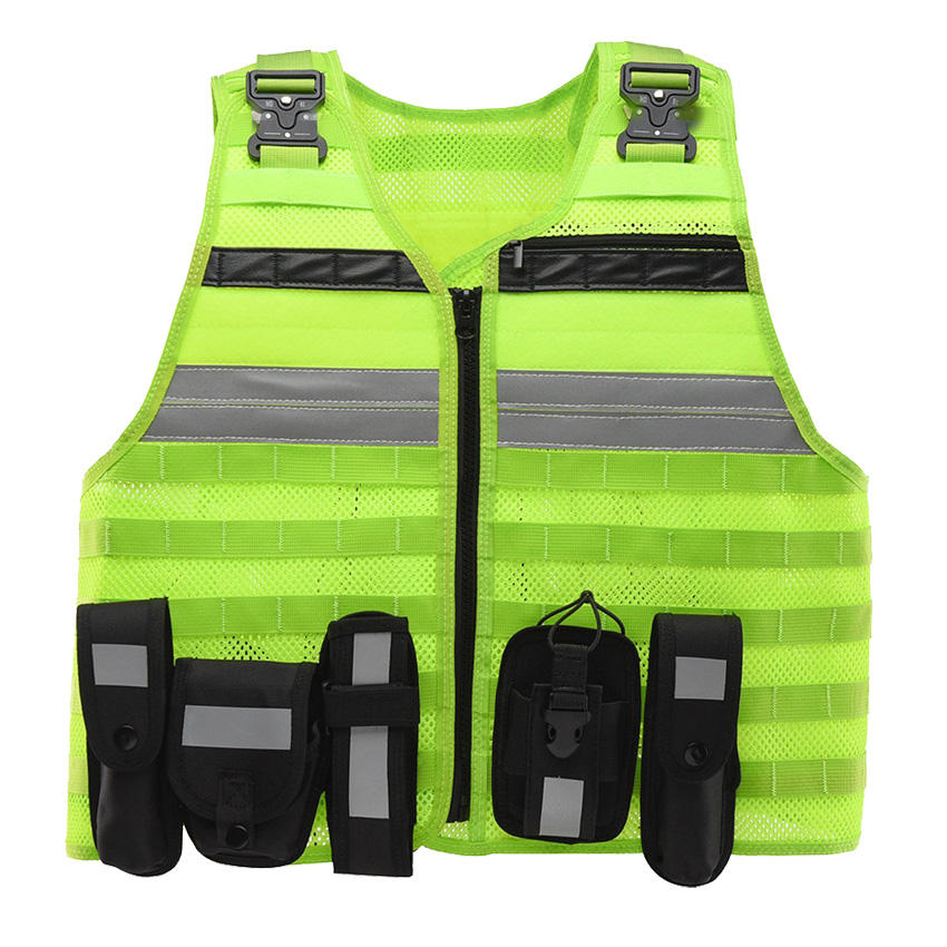 เสื้อกั๊กสะท้อนแสงแบบยุทธวิธีพร้อมสายรัดนุ่มสบาย กระเป๋าหลายช่อง ชุดยูนิฟอร์มรปภ. แบบกำหนดเองได้