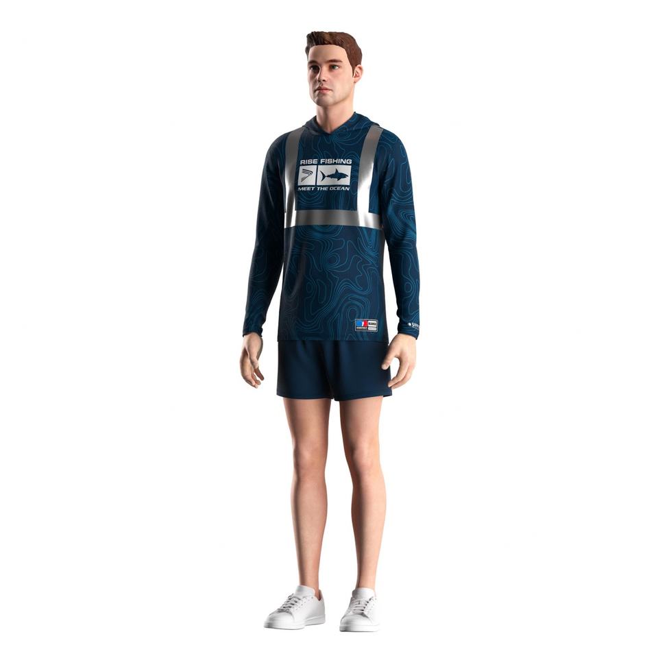เสื้อฮู้ดดี้ตกปลาแบบมีแถบสะท้อนแสง UPF50+ แห้งเร็ว ระบายอากาศได้ดี ป้องกันแสงแดดทั้งกลางวันและกลางคืน สำหรับสวมใส่ได้ตลอดวัน