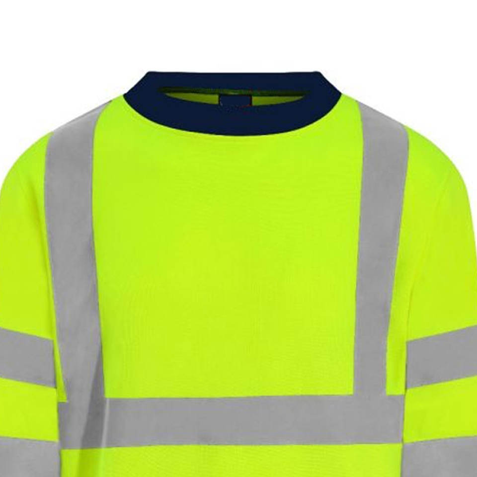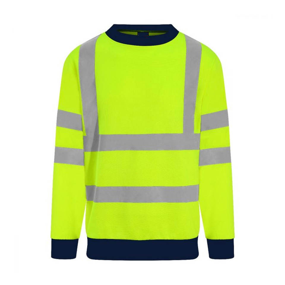 เสื้อสเวตเชิ้ตแขนยาวสะท้อนแสงสำหรับงานรักษาความปลอดภัย โพลีเอสเตอร์สะท้อนแสง สีเหลือง ระดับ 3 ป้องกันภัย