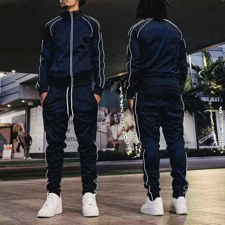 ชุดกีฬาสองชิ้นสำหรับผู้ชายชุดกีฬาชุดวอร์มซิปสะท้อนแสงชุดวิ่งทรงสลิมฟิต