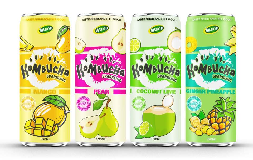 เครื่องดื่มชา Sparkling Kombucha รสผลไม้กระป๋อง320มล