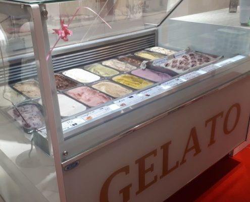 ตู้โชว์ไอศกรีมแบบแช่เย็น ดีไซน์ทันสมัยสำหรับเจลาโต้และขนมหวาน พร้อมไฟ LED เพื่อการจัดแสดงขนมหวานอย่างหรูหรา