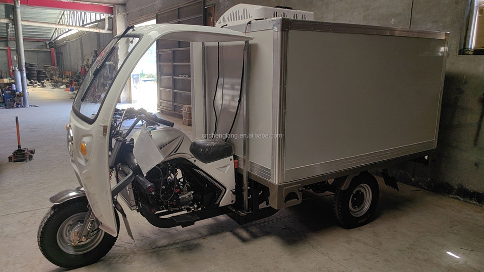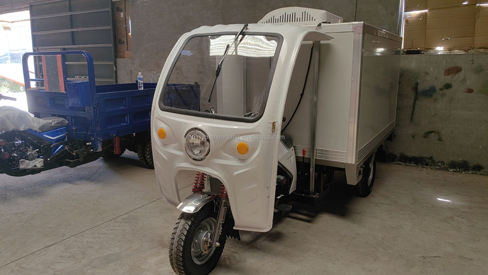 Refrigeration Tricycle with Electric Refrigerated Cargo Box Van Rooftop Mounted Freezer for Delivery Milk Motorcycle
