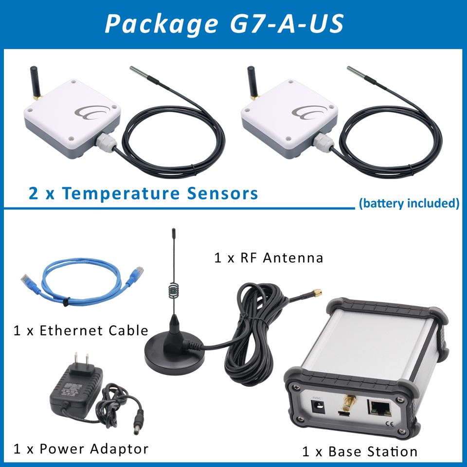 แพ็กเกจ:1 x สถานีฐาน, 2 x เซ็นเซอร์วัดอุณหภูมิแบบไร้สาย