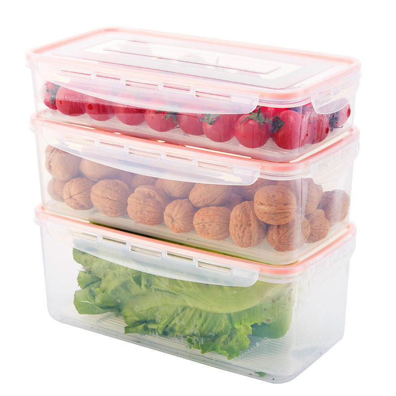 กล่องเก็บของในตู้เย็นทรงสี่เหลี่ยมผืนผ้าฝาปิดแบบคลิปสำหรับไข่ผักบะหมี่ถนอมอาหาร 800