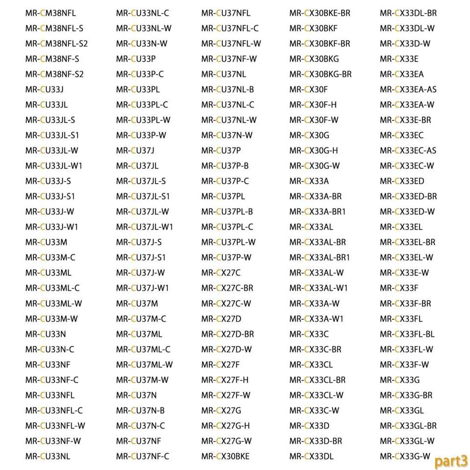 ตัวกรองน้ำสำหรับตู้เย็นที่ใช้ร่วมกันได้กับมิตซูบิชิ MRPR-51FT, MR-C33F, MR-C37D, M20CM4526, M20KY6526