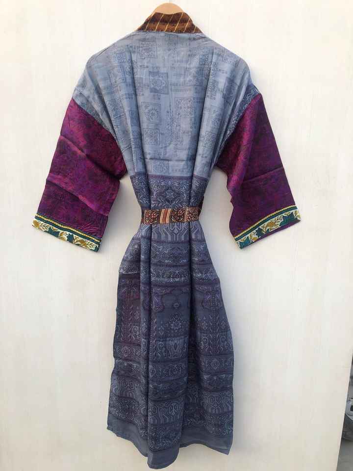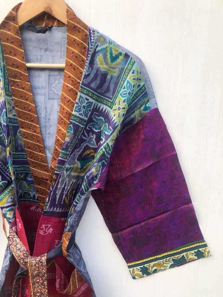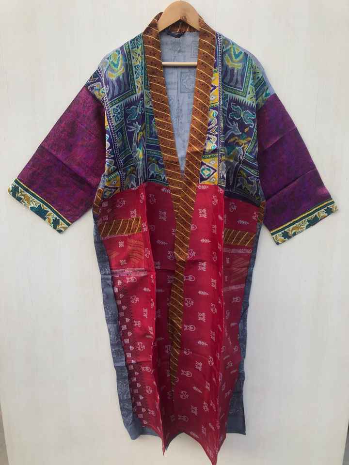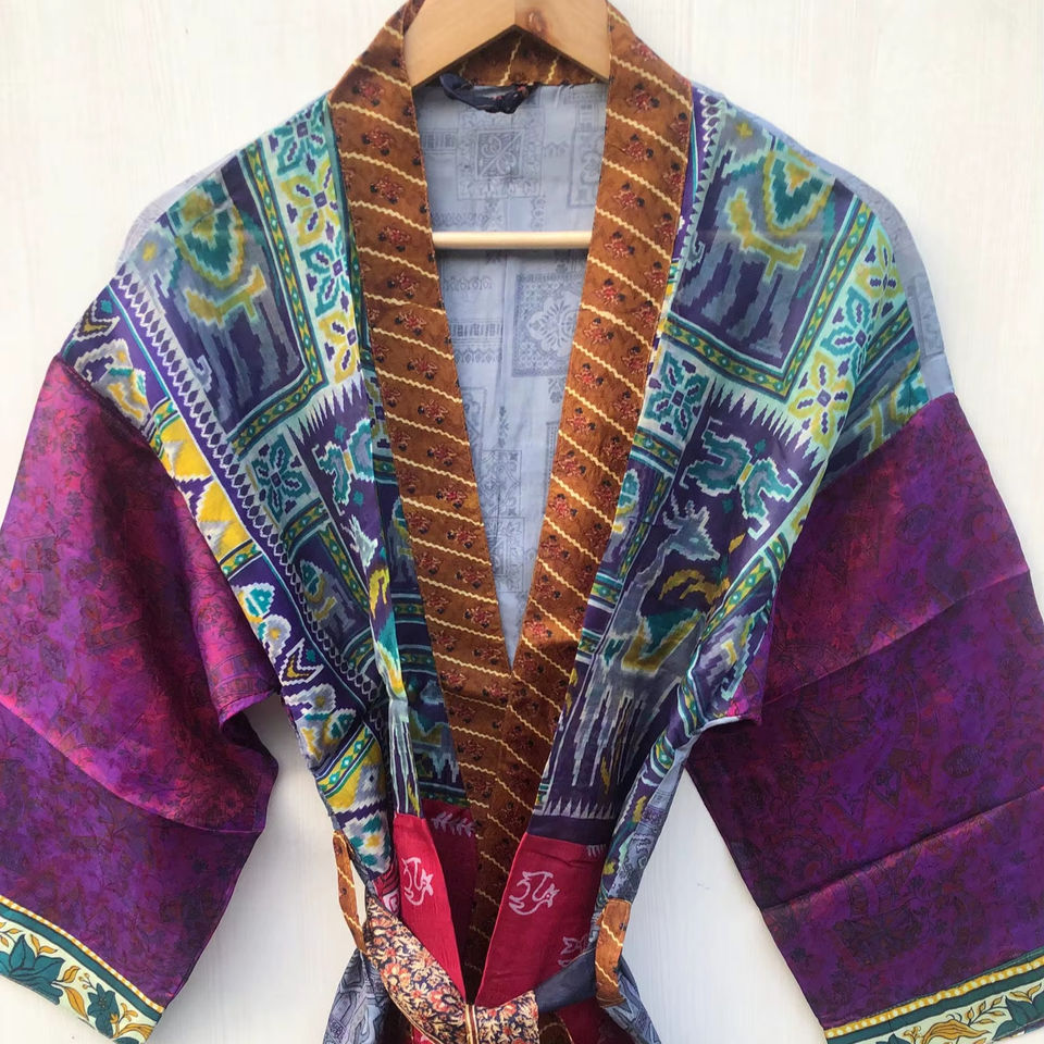 เสื้อคลุมอาบน้ำผ้าไหมเนื้อนุ่มหลากสี ยี่ห้อ Regal House Wear ชุดนอน เสื้อคลุมสไตล์อินเดีย วินเทจ ทำจากผ้าไหมซารีรีไซเคิล ขายส่ง