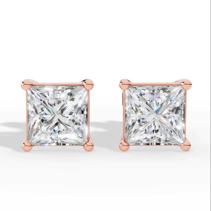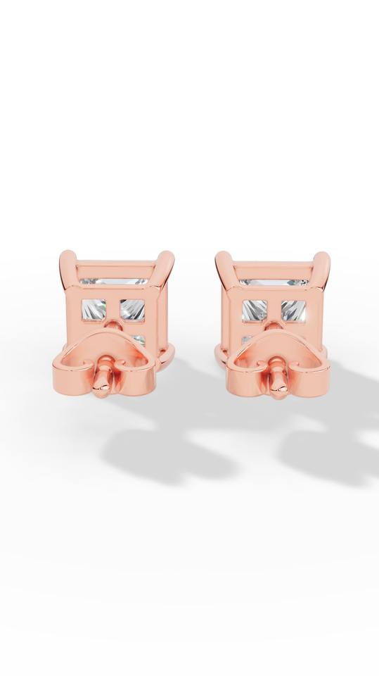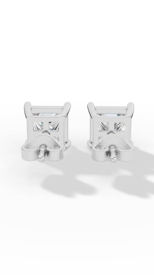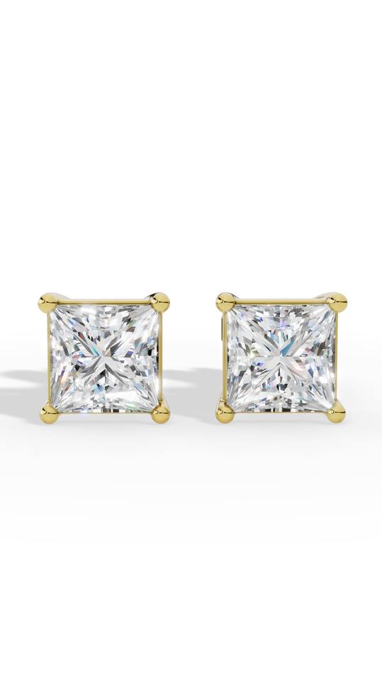 ต่างหูเพชรทรงเจ้าหญิงแบบเรกัล คัท โซลิแทร์ แบบสี่ขา ตัวเรือนทอง 10K ผลิตจากเพชรเลี้ยงในห้องปฏิบัติการ เครื่องประดับหรูหรา ขายส่ง