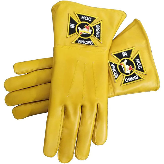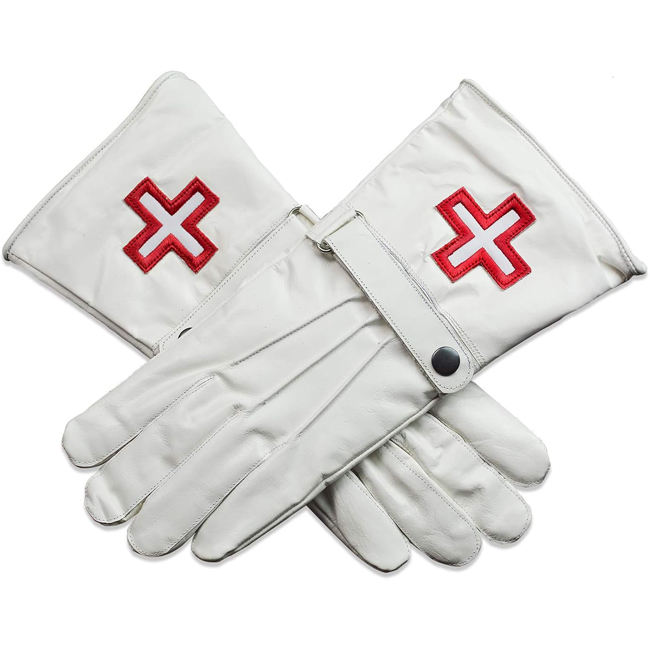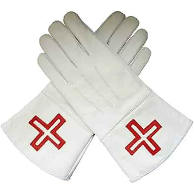 ถุงมือเรกาเลีย ลอดจ์ แบบกำหนดเอง ผลิตจากโพลีเอสเตอร์/ผ้าฝ้าย/ผ้าเมทัลลิก ลายกากบาทสีแดง ปักโลโก้แบบกระดุม สี่ฤดู ปักลายแบบแยกชิ้น