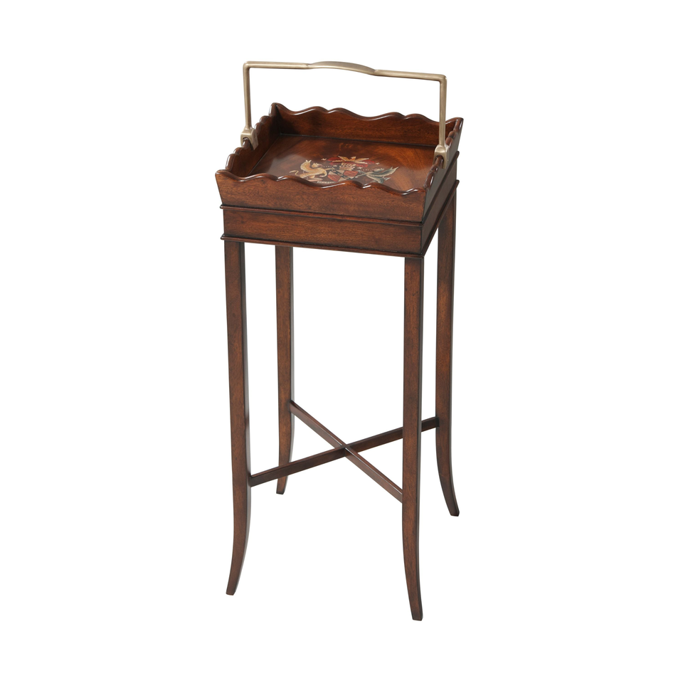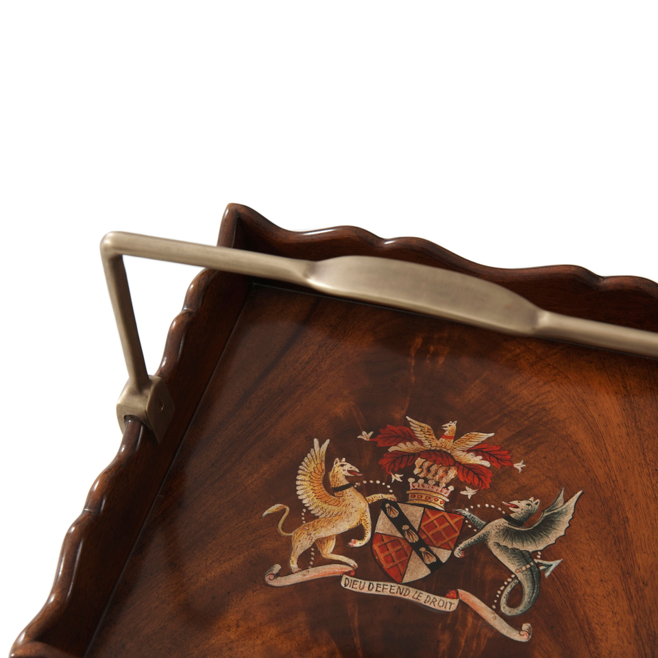 ขาตั้งกาต้มน้ำไวน์สไตล์รีเจนซี่พร้อมถาด heraldic ทาสีมือที่ถอดออกได้และขาเรียว
