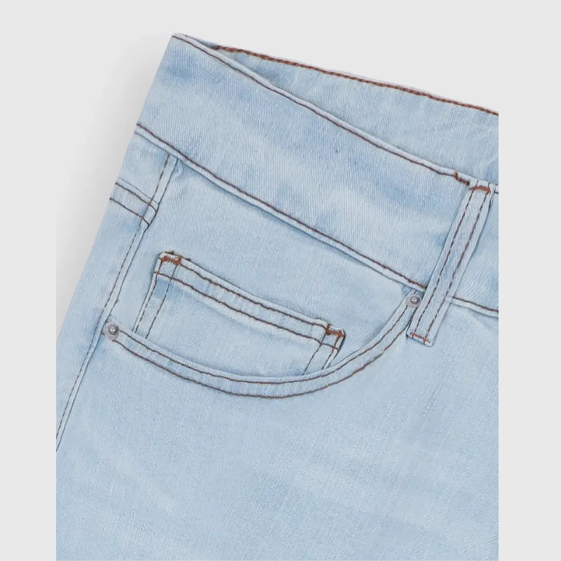 กางเกงยีนส์น้ำหนักเบาแบบถักเอวกลางเอวระบายอากาศได้ดีเป็นมิตรกับสิ่งแวดล้อม