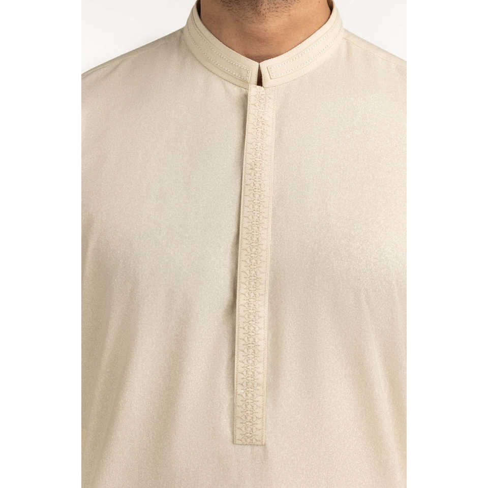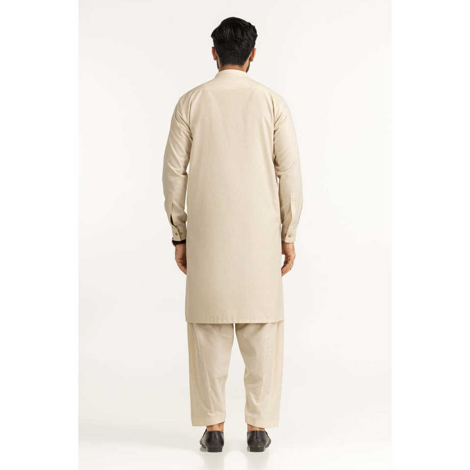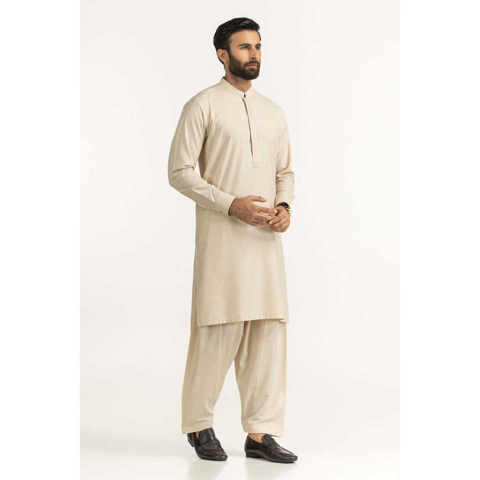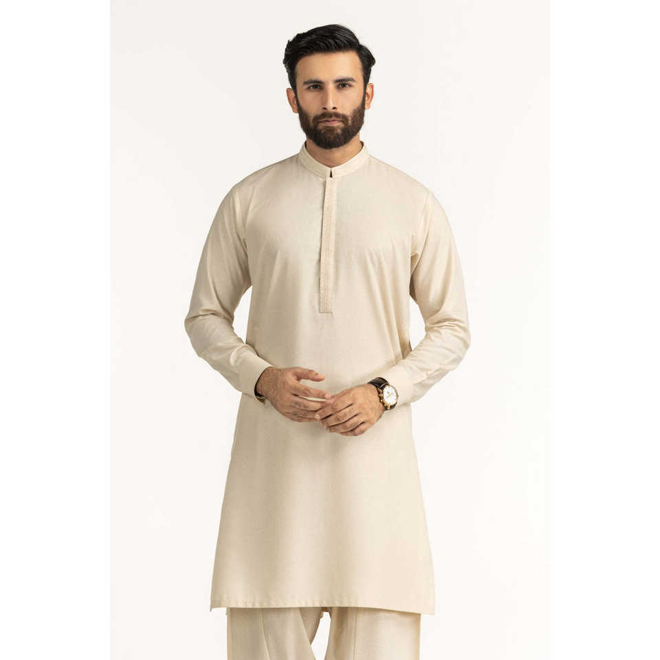 ชุดสูทผ้าฝ้ายสีเบจทรงปกติสำหรับผู้ชาย ชุดคุรตา/คุรตีอินเดีย/ปากีสถาน รุ่น SK-STY25-023