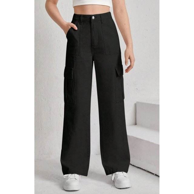 Fit Type: Multipocket Denim Cargo Jeans, Waist Type: High Waist., Fabric: Stretch Denim (Cotton + Stretch Denim)., Length: Full Length (Approx. 40 inches)., Closure Type: Zipper Fly with Metal Button., Pattern Type: Solid / Plain., Pocket Type: 6-Pocket Classic Design., Stitching: Double-Needle Durable Stitch., Details: Clean Look / Minimalist Finish / Premium Thread Work., Fabric Features: Breathable., Wash Type: Enzyme Wash / Soft Finish., Usage: Casual Wear.