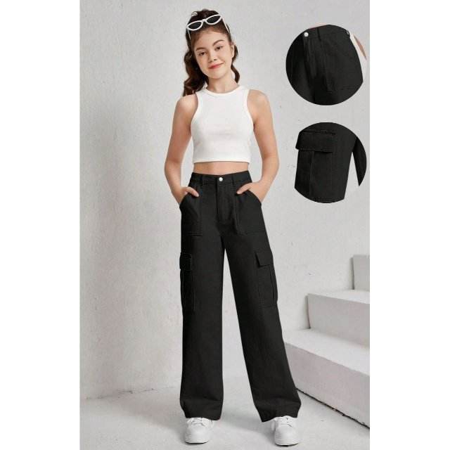 กางเกงยีนส์คาร์โก้ทรงเรกูลาร์ฟิตสีดำสไตล์วินเทจ Y2K สำหรับผู้หญิง เอวสูง ยืดได้ มีกระเป๋าหลายช่อง สไตล์ลำลองแนวสตรีทแฟชั่น