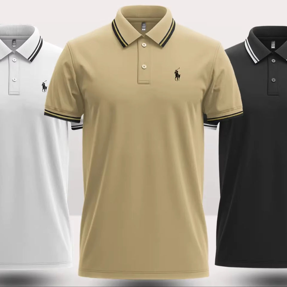 เสื้อโปโลผู้ชายทรงปกติคอเสื้อมีกระดุมแบบคลาสสิกผ้านุ่มและความสบายในชีวิตประจำวัน