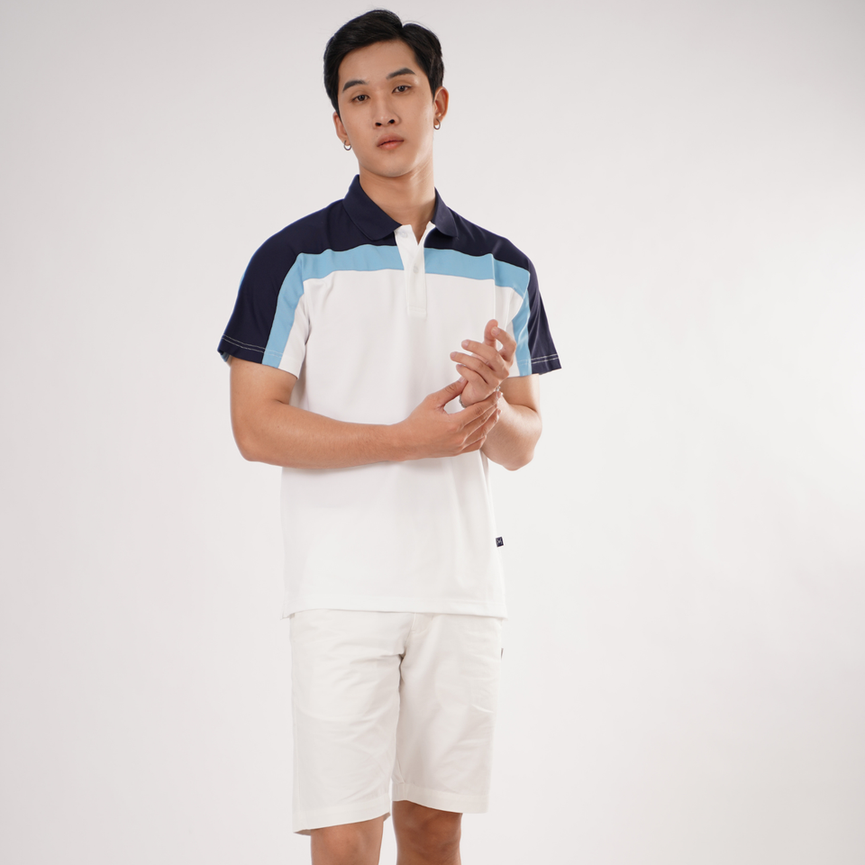 เสื้อโปโลผ้าสแปนเด็กซ์โพลีเอสเตอร์ทรงพอดีตัวมีสีตัดกัน
