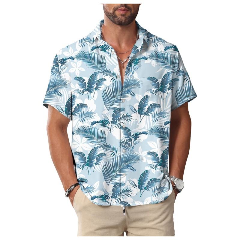 เสื้อเชิ้ตผู้ชายแขนสั้นกระดุมหน้าแขนสั้นธรรมดาเสื้อเชิ้ตลำลองสไตล์ฮาวายสำหรับผู้ชายเสื้อมีกระดุมสำหรับชายหาดฤดูร้อน