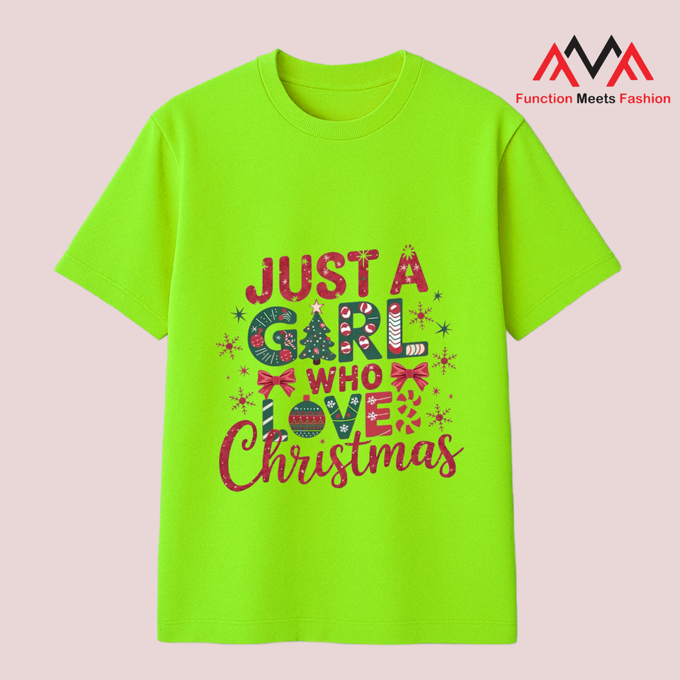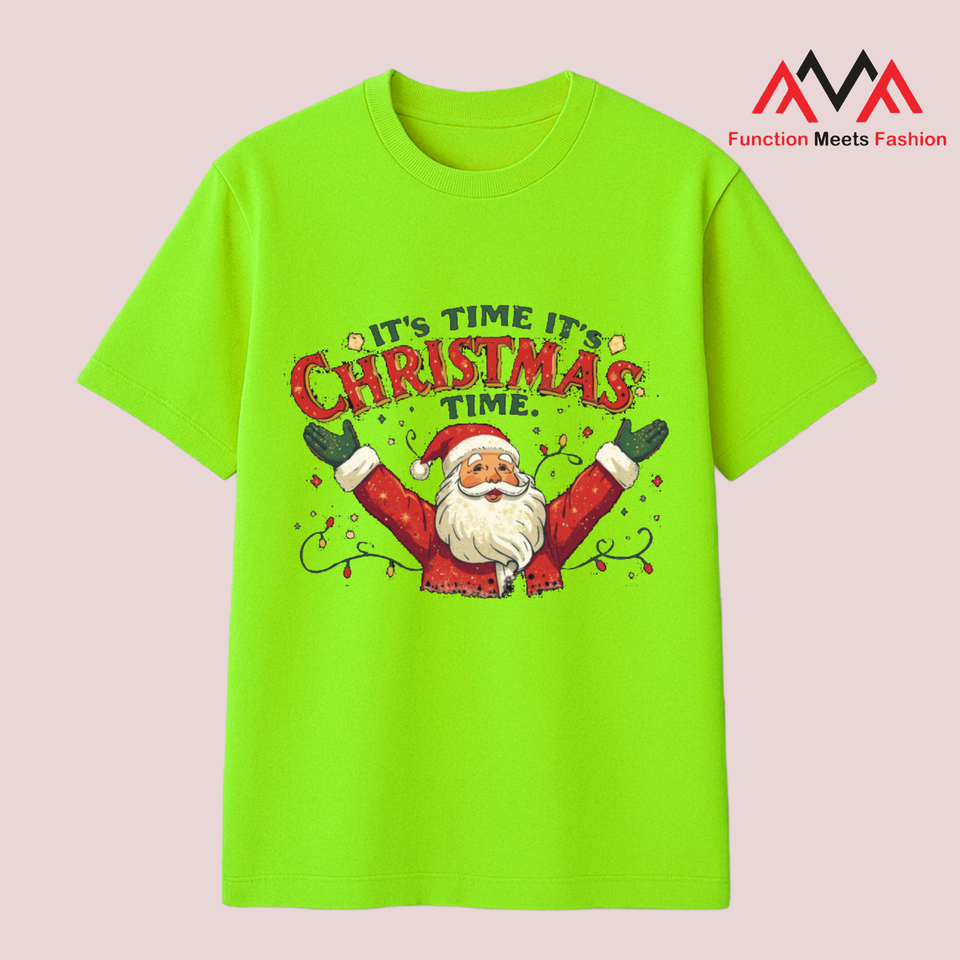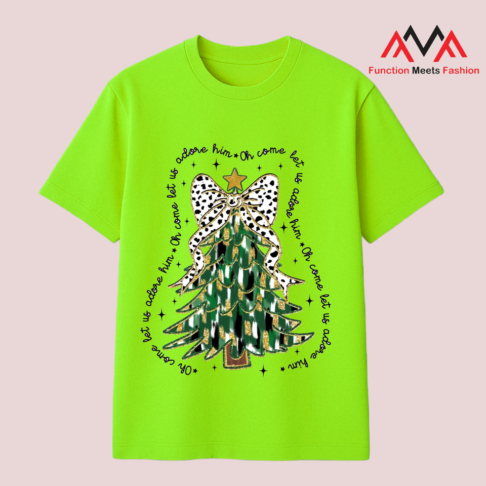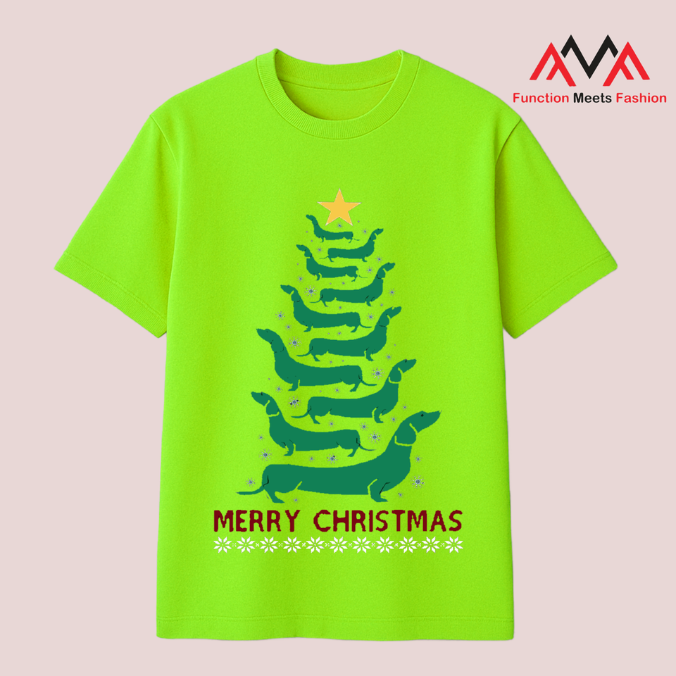 เสื้อยืดคอกลมสีเขียวมะนาวพิมพ์ลายดิจิทัลแบบเป็นมิตรกับสิ่งแวดล้อม สไตล์ลำลอง/สตรีทแวร์/ชุดชายหาด ของเวียดนาม สำหรับเทศกาลคริสต์มาส