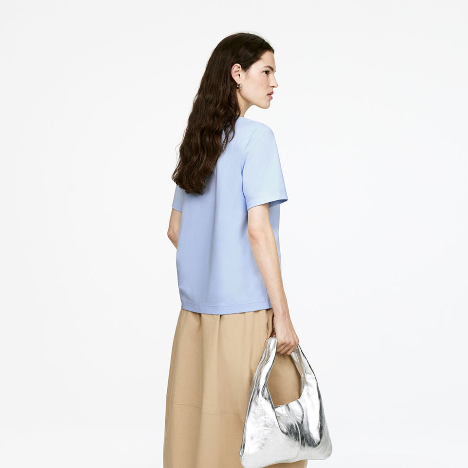 เสื้อยืดสตรีผ้าสักหลาดแขนปกติ