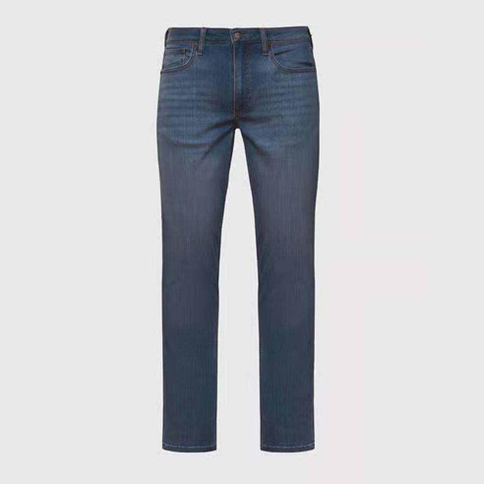 Regular Slim Fit Yarn-dyed Stretch Straight Jeans for Tall Men Concrete Grey Streetwear Breathable Button Spring 100% Cotton